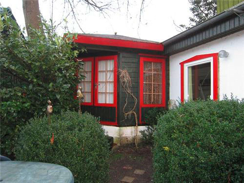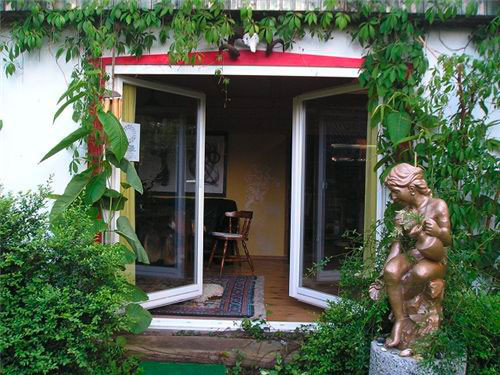 - großes Wohnzimmer (30 m²) mit Fenstern und Oberlicht sowie Zugang zum Garten, Sat TV, Esstisch, gemütliche Sitzgruppe sowie Hängematte zum Relaxen